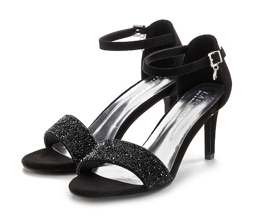 LASCANA Riemchensandalette, Sandale, Sommerschuh mit Glitzersteinchen & Metallic-Innensohle VEGAN